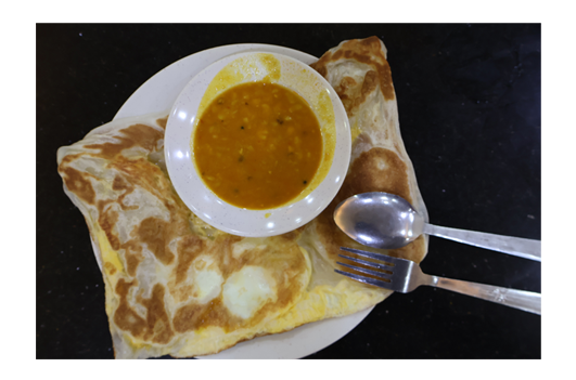 Classic roti with a twist — an egg is cracked into the dough as it cooks, adding richness and softness inside.